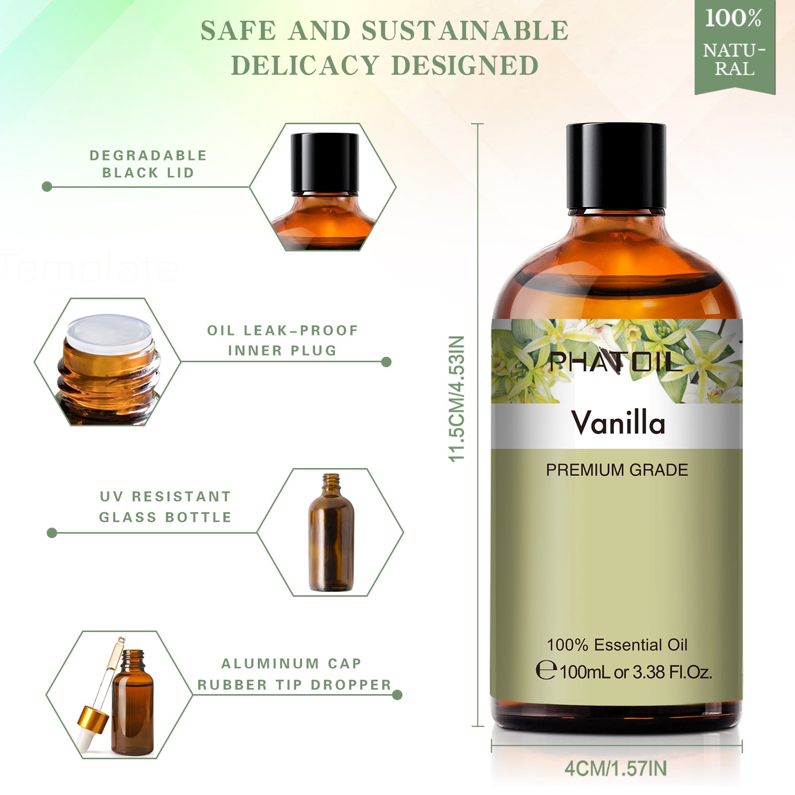 Discover the versatility of Phatoil 100ml Pure Natural Essential Oils for aromatherapy. These high-quality oils are made from 100% pure natural ingredients, ensuring therapeutic-grade quality. Use them with humidifiers, aromatic diffusers, and more for a luxurious experience.