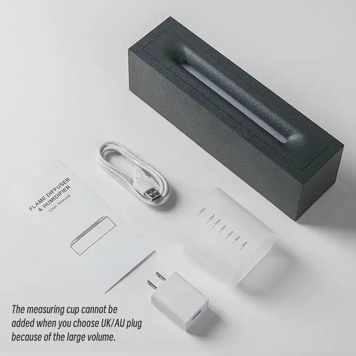 - Functions: aromatherapy, humidification, atmosphere lamp (blue, imitation fire red)