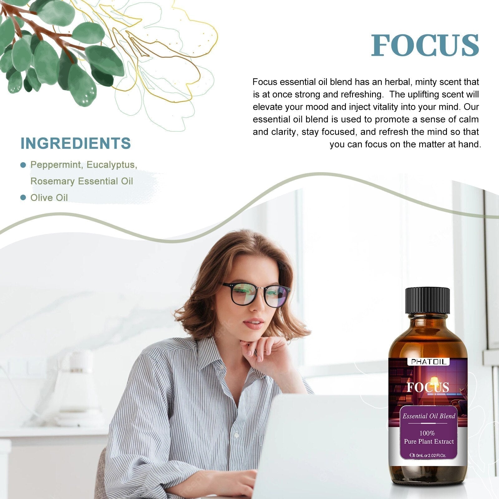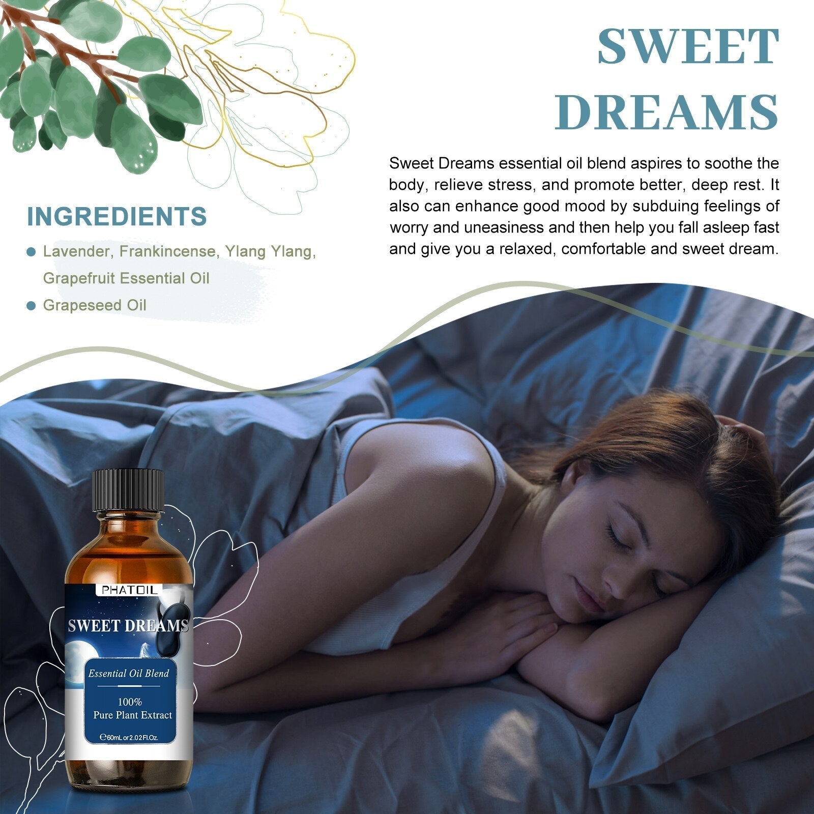 Phatoil 60ml Compound Essential Oil Pure Plant Extract With Dropper