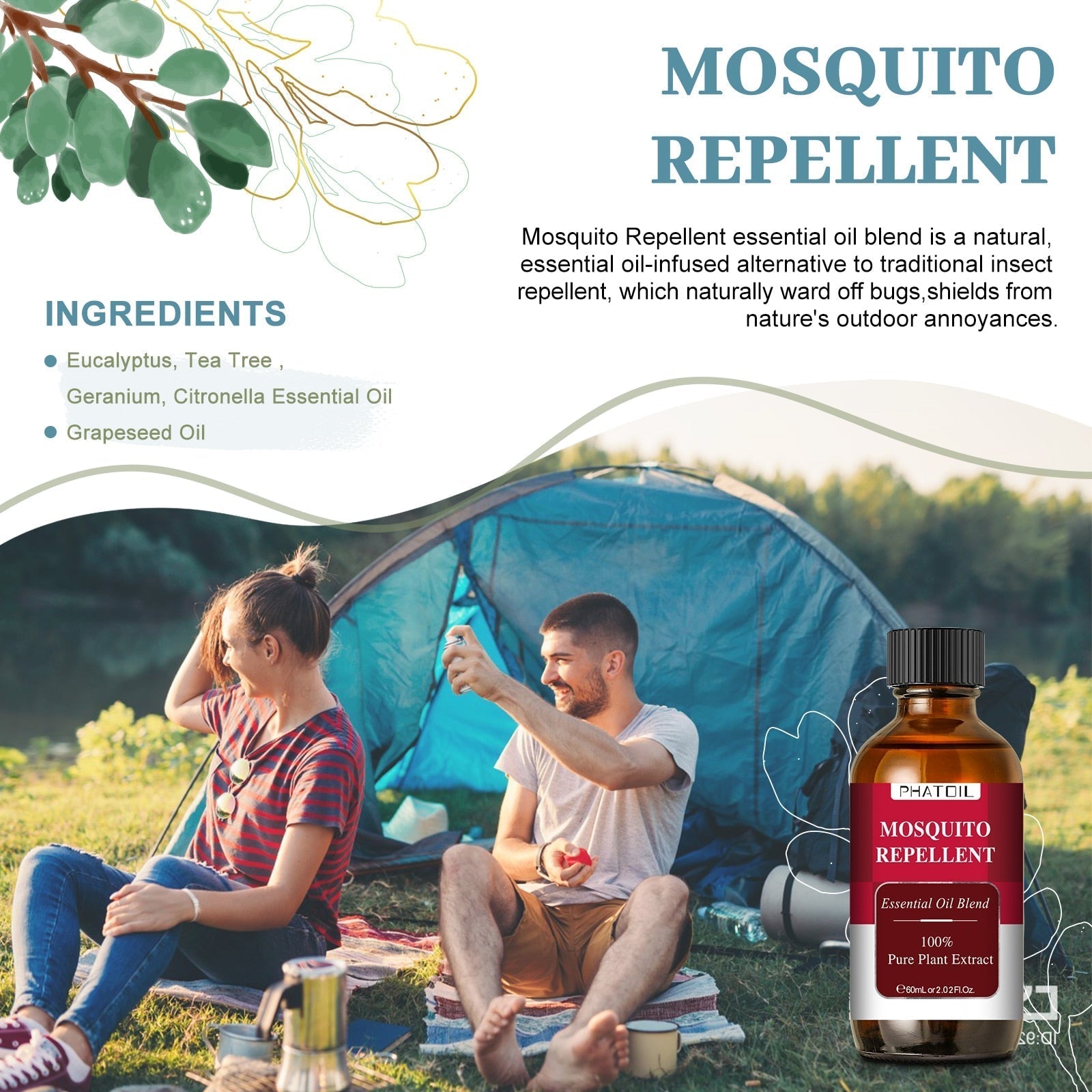 Looking for a natural way to ease anxiety, soothe stress, and boost your immunity? Look no further than PHATOIL 60ML Compound Essential Oils. With a unique blend of pure natural plant extract oil, this essential oil is perfect for aromatherapy massage, spa baths, and as a mosquito repellent.